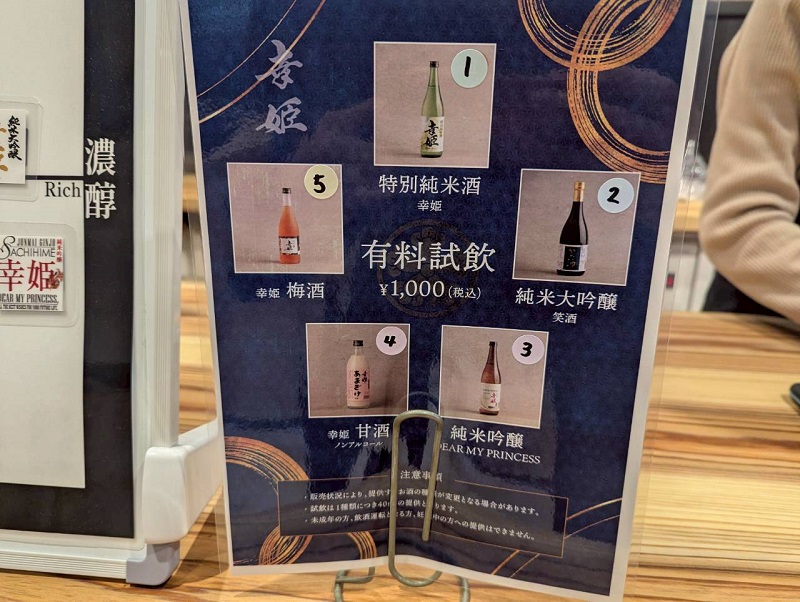 5種類も試飲できて、甘酒があるので個人的には嬉しいです。と言うのも、子連れ旅ですので、甘酒の試飲ができるだけで